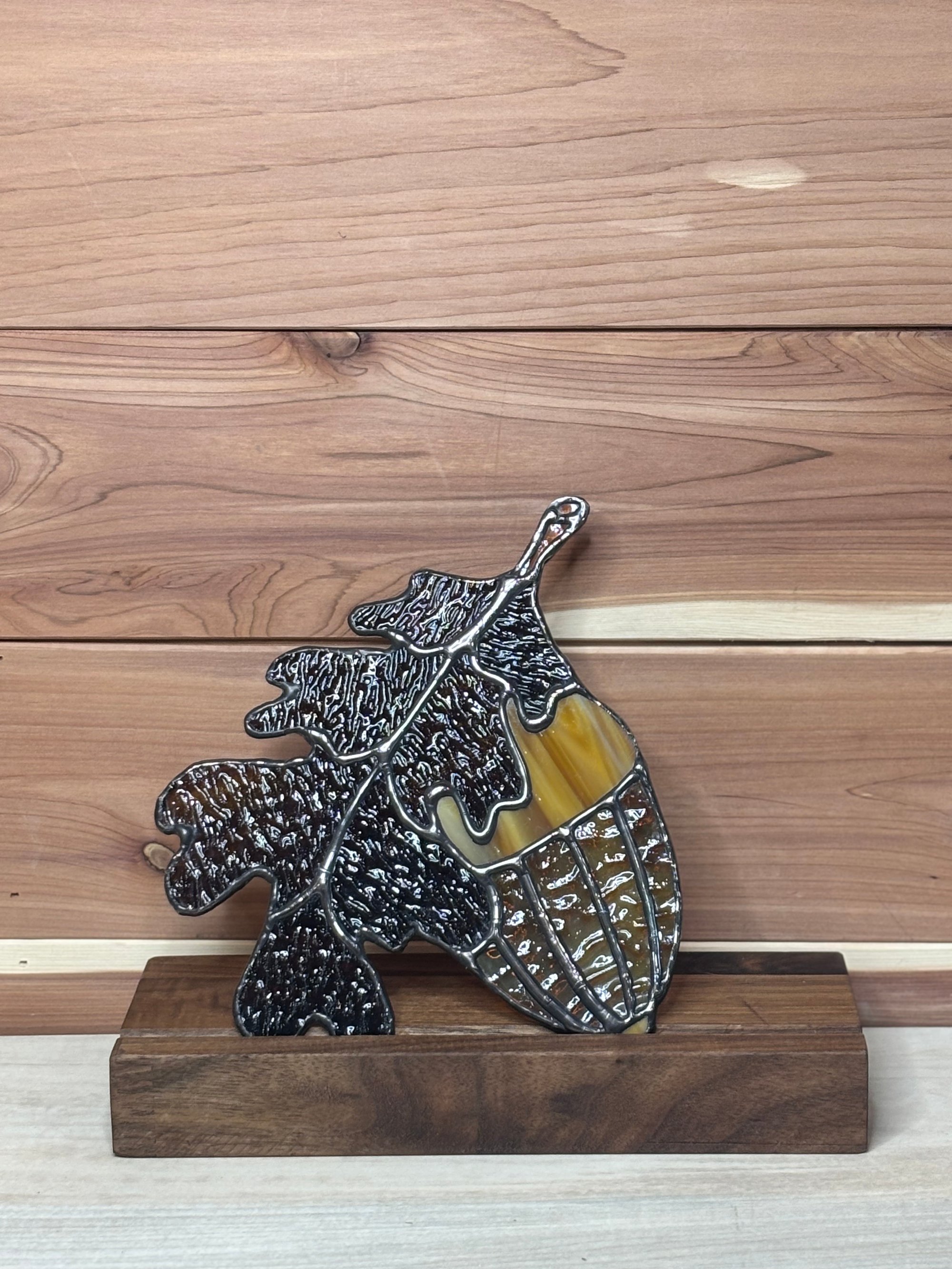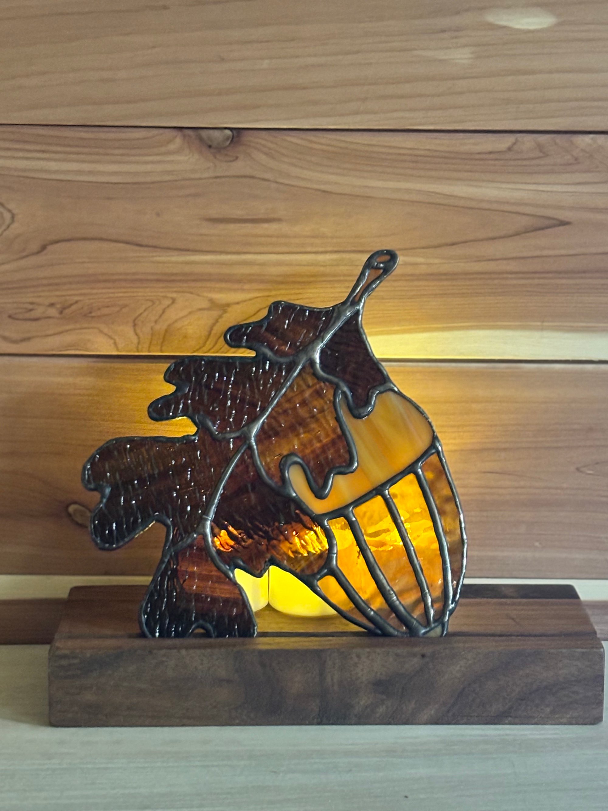 ⨠Bring the warmth of autumn indoors with this glowing stained glass acorn and oak leaf ā a perfect touch of fall charm. š
